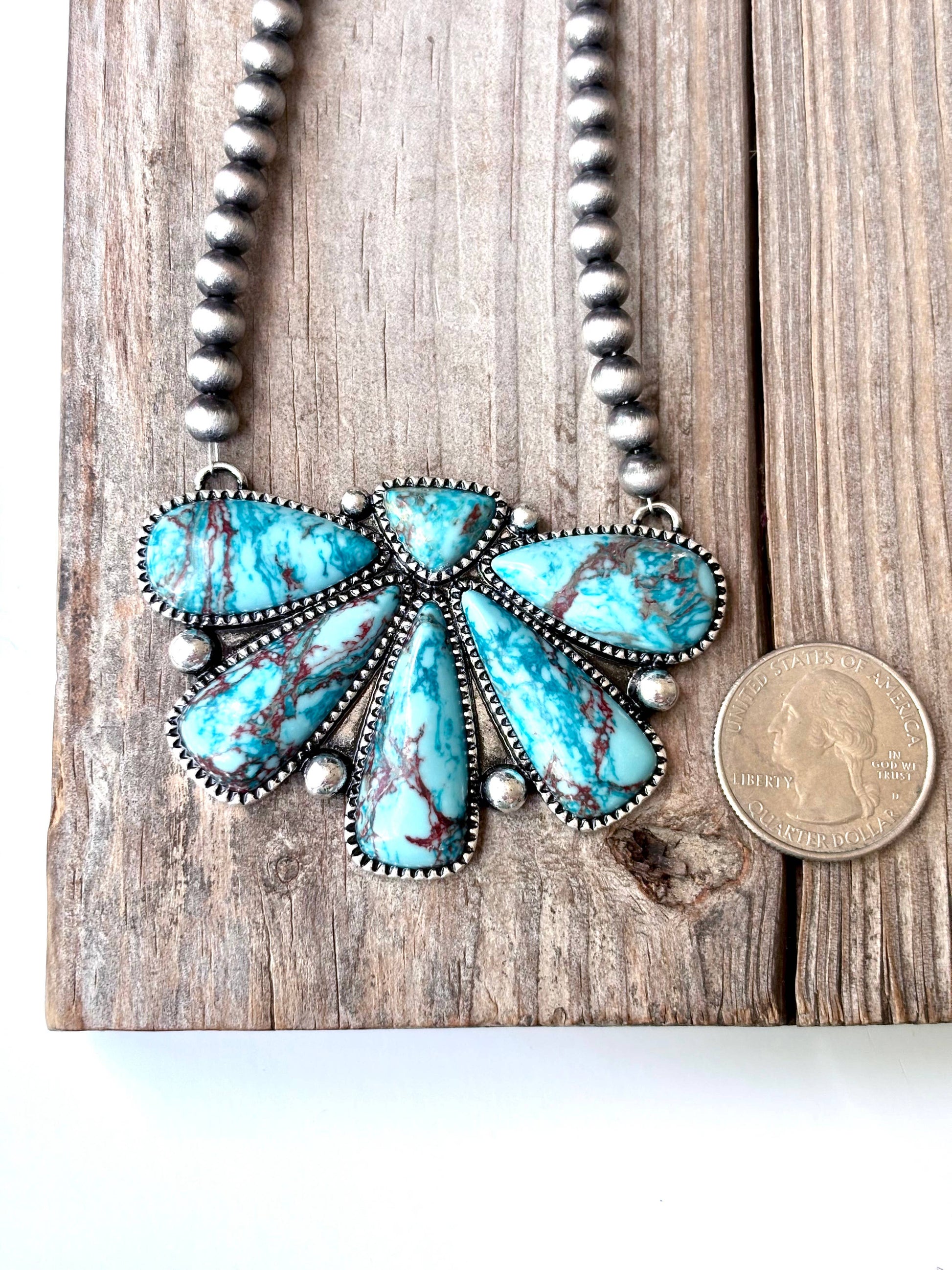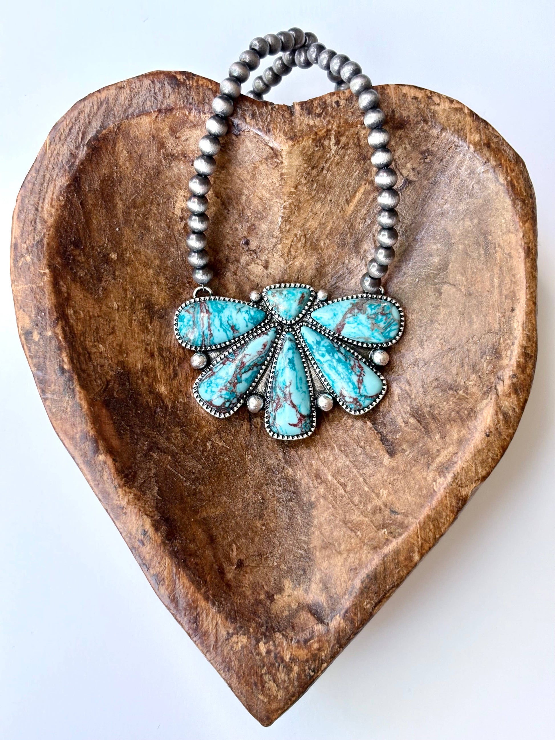 Western Squash Blossom Pendant w/ Navajo Pearl Bead Necklace